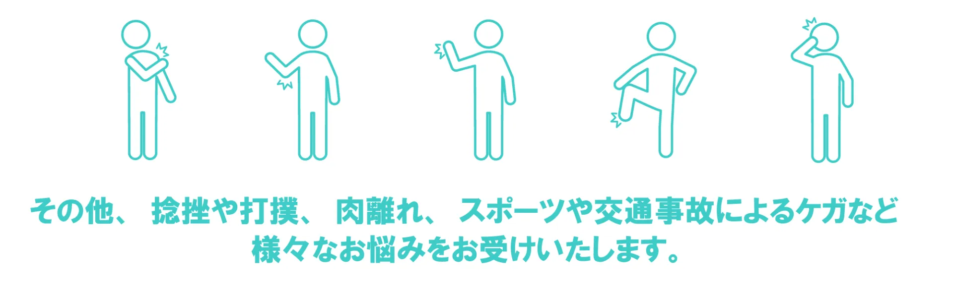 ※保険適応には適切な負傷原因が必要です。肩こり、腰痛、筋肉痛のような慢性的な痛みは保険適応外となります。
